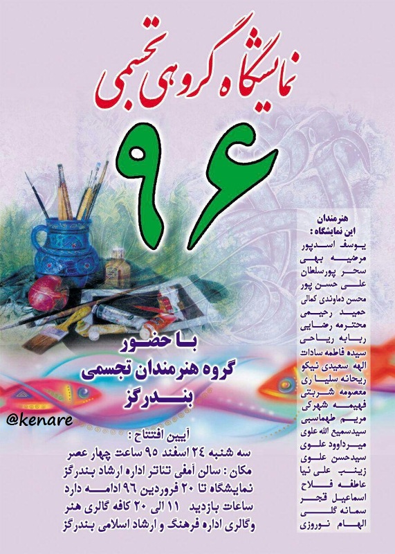 به گزارش کناره ، به مناسبت ایام جشن عید باستانی نوروز ، جمعی از هنرمندان تجسمی شهرستان بندرگز اقدام به ایجاد نمایشگاهی در این شهرستان نمودند.