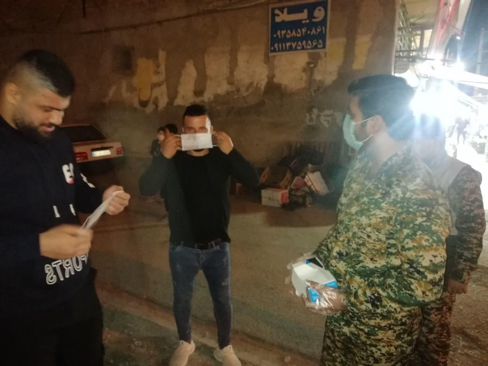 گروه های جهادی بسیج با همکاری هلال احمر اقدام به توزیع 700 ماسک و امربه معروف رعایت پروتکل های بهداشتی در بازار اقدام کردند